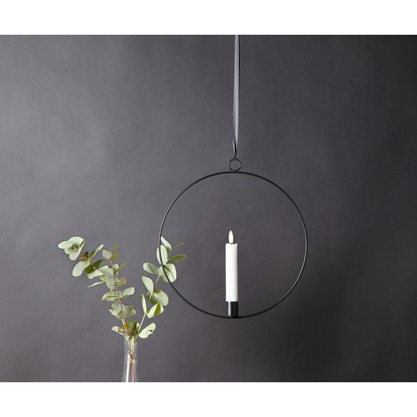 Metallisessa koristerenkaassa 15 cm korkea LED-antiikkikynttilä Flamme.